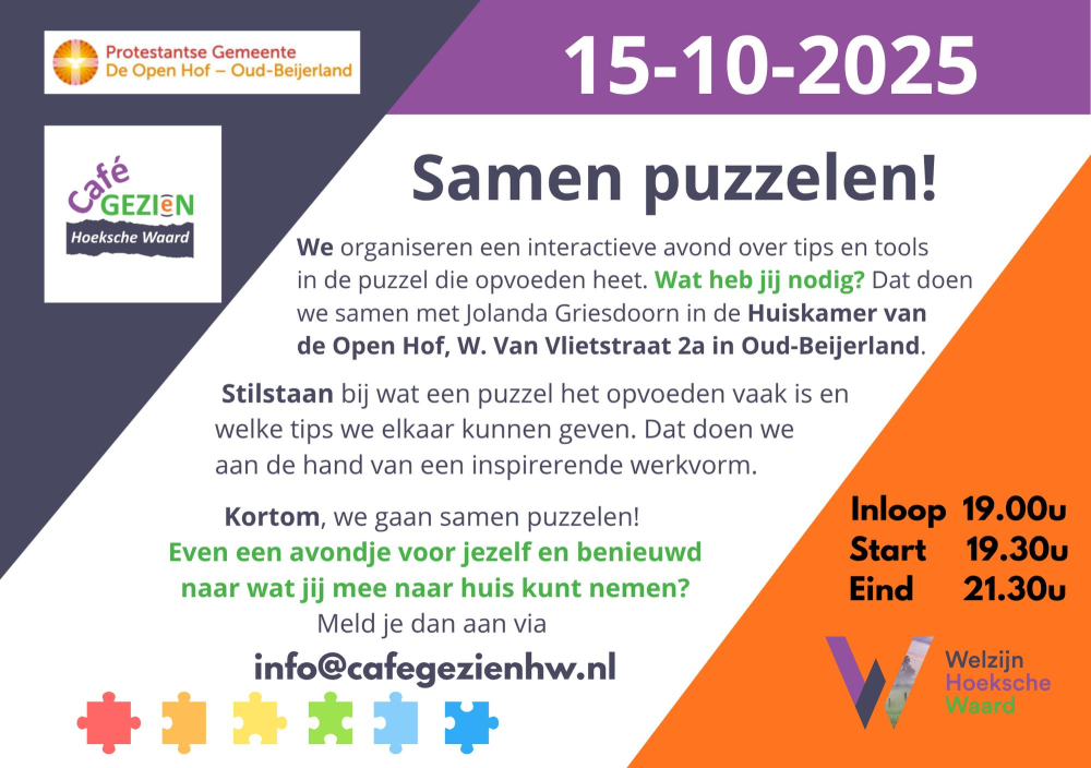 We komen samen op maandagavond 17 februari, 20.00-21.30 uur. Overige data: 9 maart en 30 maart. Aanmelden bij Lyonne Verschoor.