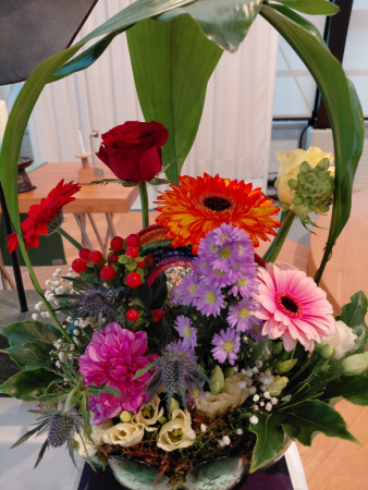 Liturgische bloemschikking bij de Regenboogdienst
