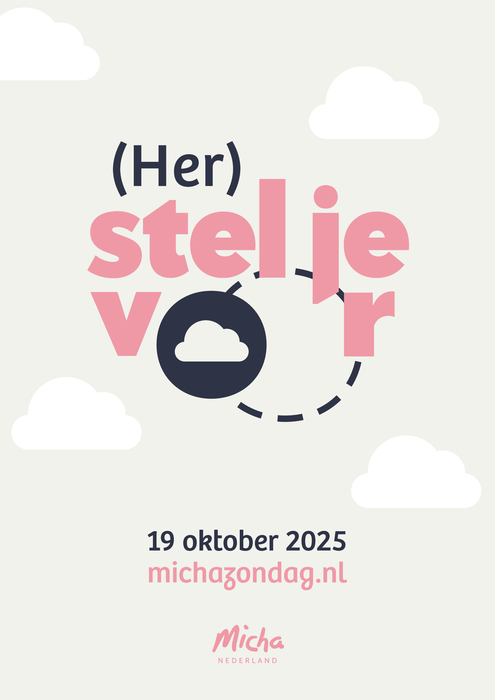 “(Her)stel” je voor Is het thema van de Michazondag op 19 oktober. We willen in deze themaviering aan de slag met ons voorstellingsvermogen en onze verbeeldingskracht: Wat als we concreet doen wat de Bijbel ons leert over herstel? Stel dat we de wereld een sabbatsjaar gunnen, of zelfs een jubeljaar. Stel dat we onze maatschappij zouden inrichten met oog voor de natuur, ook voor onze medemens en toekomstige generaties. Zou herstel dan mogelijk zijn? Al is het maar in het klein? Hoop brengen begint met verbeeldingskracht – het vermogen om een andere realiteit te zien en erin te geloven.